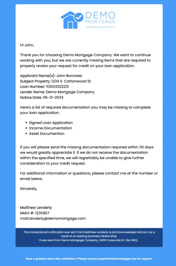 Sample Borrower Email #
