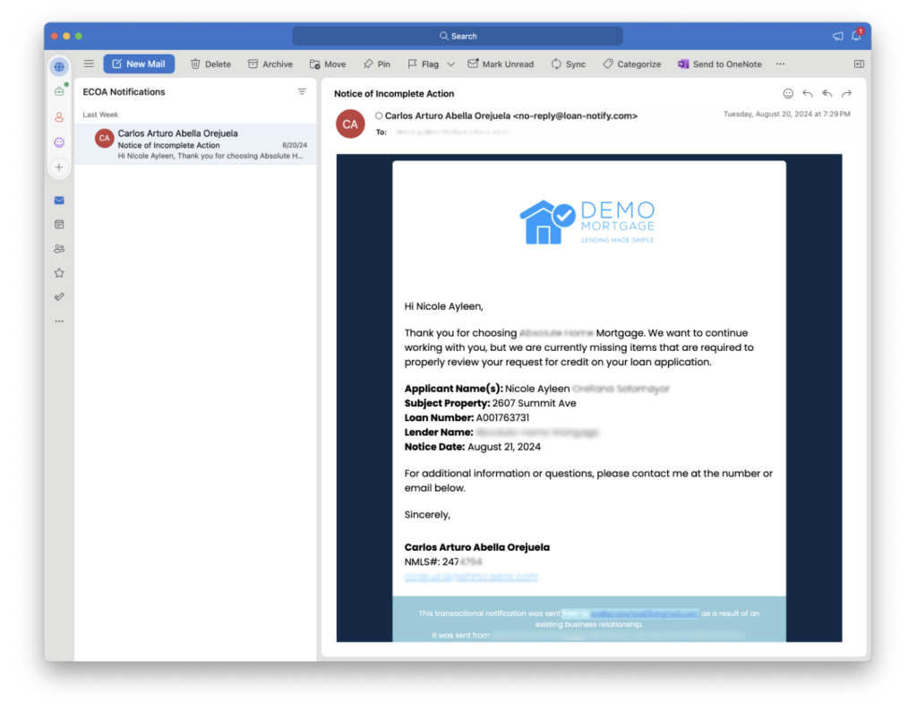 The ECOA notifications you receive in your inbox are being generated by rules your Encompass Administrator has configured for your organization.